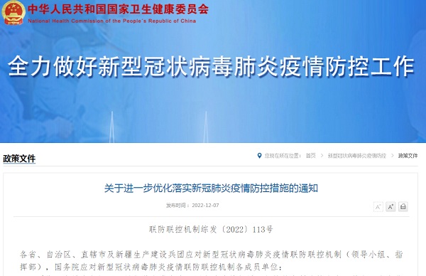 =esub($navinfor[smalltext],100)?> 关于进一步优化落实新冠肺炎疫情防控措施的通知联防联控机制综发〔2022〕113号各省、自治区、直辖市及新疆生产建设兵团应对新型冠状病毒肺炎疫情联防联控机制(领......(2022-12-07)