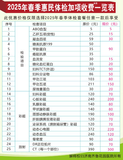 凡参加本届春季惠民体检,选任意一款套餐者: