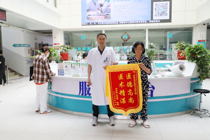 近几个月定期来找张林主任做复诊和康复,目前身体已完全康复,“看病遇到一个好医生真的很安心”,6月24日下午,杨女士的老伴手握锦旗激动地讲到:“张主任工作认真负责,医术精湛,我和家人真心感谢这位妙手回春的好医生!”