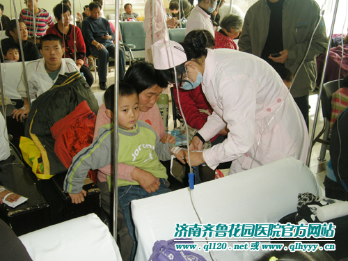 宽敞、明亮、舒适的门诊输液治疗大厅占地200平方米,设输液座椅75张,落地窗、顶灯为室内提供了充足的采光和照明。大厅里还设有电视机、饮水机等设施为患者提供便利。