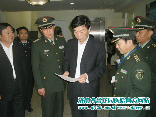 11月3日,济南市副市长齐建中同志及济南警备区司令员胡少平、政委晋争鸣、副司令员王晓清来我院检查指导2010年征兵体检工作。