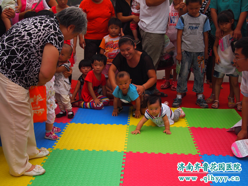 为了庆祝我院数字化预防接种工作正式开诊,医院于2012年8月18日上午9点举办了“我运动,我健康,幼儿趣味运动会”活动,此次活动主要是针对0至6岁的宝宝,活动内容丰富多彩,趣味十足,开设的活动项目均是按照宝宝的年龄特点各不相同,主要包括毛毛虫向前冲(爬行赛)适合8个月至1.5岁的宝宝;五彩缤纷辨色跳(分辨颜色)适合1.5岁至3岁的宝宝;小小少年愚公移山(移板跳)适合3岁至5岁的宝宝;与时俱进赶球跑(赶球跑)适合5岁至6岁的宝宝。
