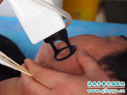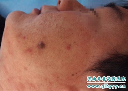 张先生左塞部长有一颗黑痣,后来通过谈话了解到,此痣之前只是一个米粒大小的粉刺,然而爱美是人的天性,出现粉刺后我们都会选择用手把里面的白色物质挤出,张先生也不例外,等粉刺露出白头后,就用手把它挤了出来。随着年龄的增长,没想到那个粉刺逐渐长成像黑痣一样的黑色物,而且还越来越大,张先生意识到了严重性,后去多家医院进行咨询,医生都建议及时切除以免带来不必要的麻烦。张先生慕名来到我院皮肤科,后经山东省激光医学会常务副理事长杨立强诊断,此痣名为皮脂腺瘤,建议应及时治疗。据临床文献资料显示,此皮脂腺瘤还有恶变可能,应及时治疗,以免造成更严重的后果。张先生接受了建议并做了切除治疗。