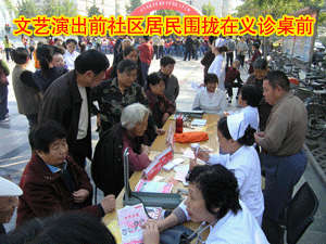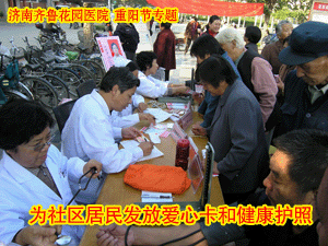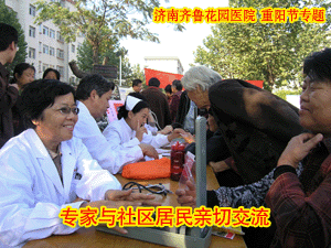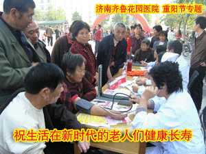 今天一大早,济南齐鲁花园医院的专家大夫们就来到东风街道办事处东方花园社区的休闲活动广场,桌子摆下,大家刚坐定就被热情地居民围了好几层。广场上,东风街道庆祝重阳节第四届文艺汇演即将拉开帷幕。那边,街道办事处的工作人员在忙碌着维持现场秩序,进行汇演开始前的最后彩排;这边,济南齐鲁花园医院的专家大夫们忙着给老人们量血压,登记填写健康档案,耐心回答老人们咨询的问题;看着这一幕幕温馨和谐的场面,真是感慨万千!尊老、敬老、爱老、助老已经蔚然成风,老年人的生活和健康问题已经为社会各方面所重视。