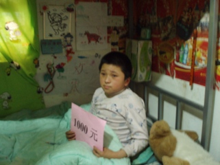 牛传磊,是一名外来务工人员的子女,5岁时因意外导致双腿致残,拄上了双拐,后来跟随打工的父母来到了济南,现在在文化东路第二小学上二年级,他的姐姐为了照顾他也在这所学校就读。一家人的生活只靠父亲卖羊肉汤勉强维持。近日,牛传磊又摔伤了腿,只能在家卧床休息,两个星期没有去上学。得知他的情况后,唐理事长马上去家里看望了他,给他送去了1000元的救助金,暂时缓解了他家的困难。