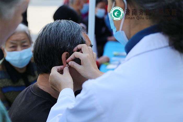 现场进行中医耳穴压豆疗法
