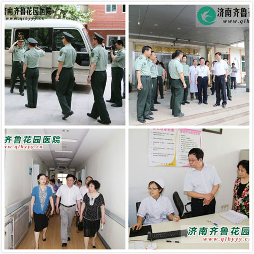 各级领导来院视察【左上角:济南军区司令员来院视察征兵体检;右上角:济南市副市长来院视察征兵体检;左下角:济南市卫生局党委副书记高萍同志来院视察工作;右下角:济南市历下区卫生局局长来院视察指导工作】