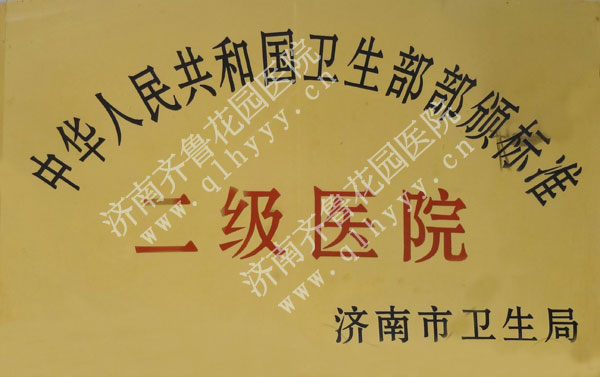 济南市卫生局颁发中华人民共和国卫生部部颁标准二级医院